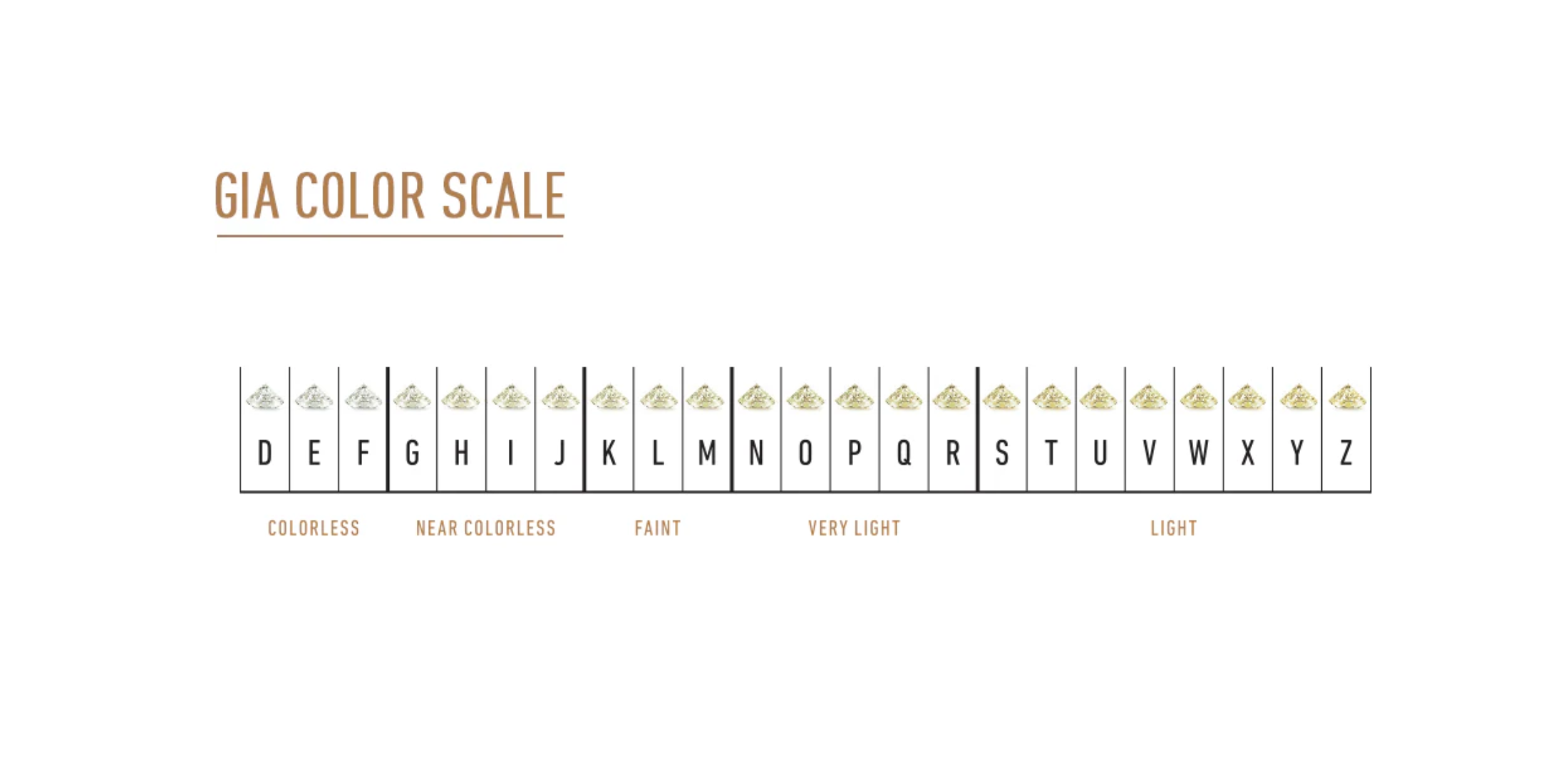 Color is actually defined as the diamond’s absence of color. Diamond Color is graded on