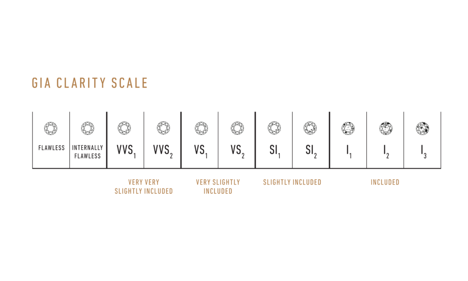 Clarity is graded on a scale from “IF” (internally flawless) to “I” (imperfect). These grades