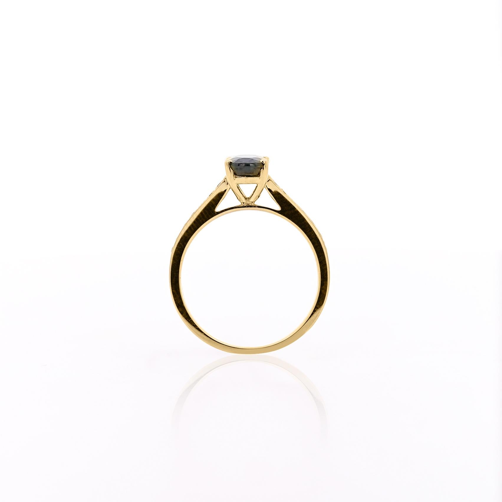 1,5-1,19 Karat Ovalschliff Tiefblauer Saphir und Diamant-Pavé-Seitensteine Kathedralenfassung 18K Gelb- oder Weißgold Ring.