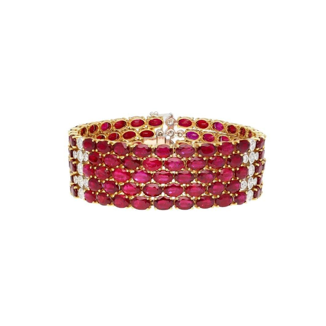 72 Carat Oval Ruby 5-Row Multi Link Tennis Bracelet in 18K Gold