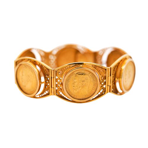Russian Imperial 10 Ruble Nicholas II 1898 22K & 18K Gold Coin Bracelet