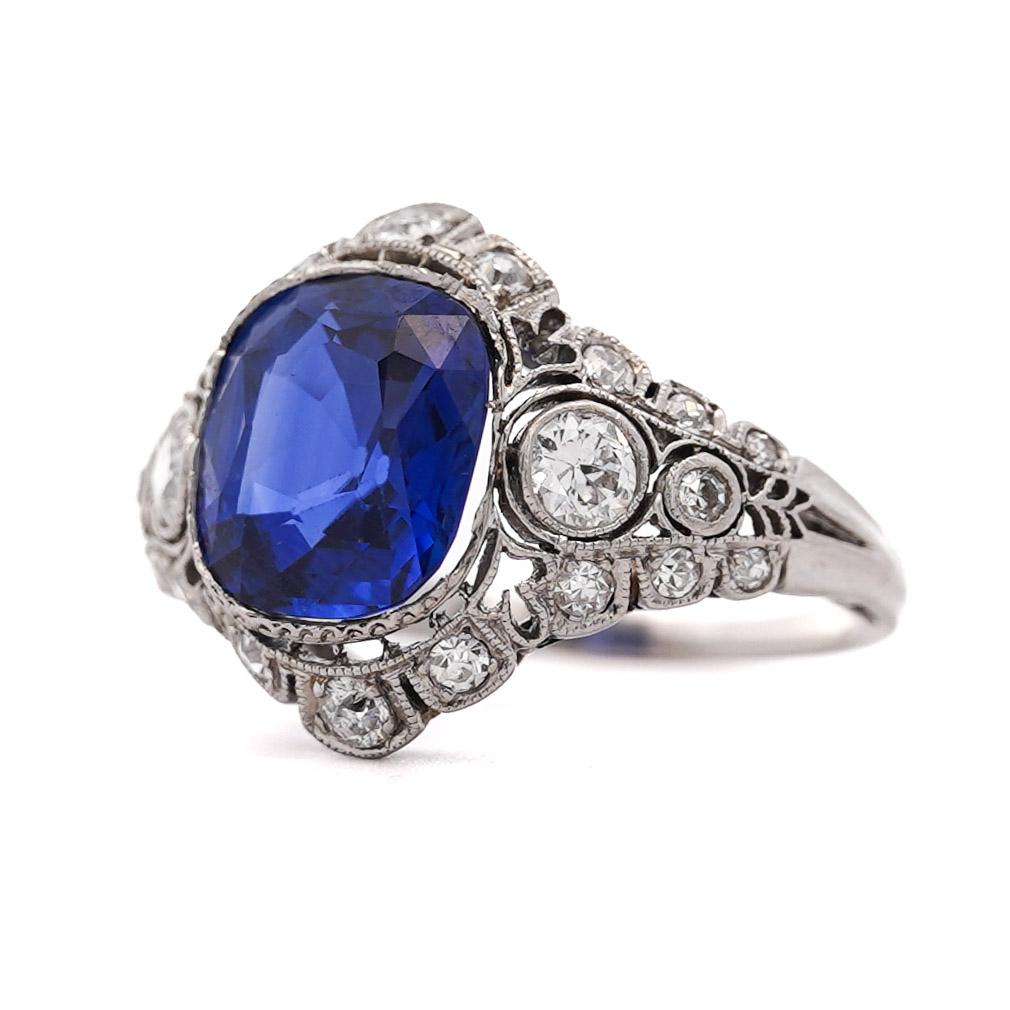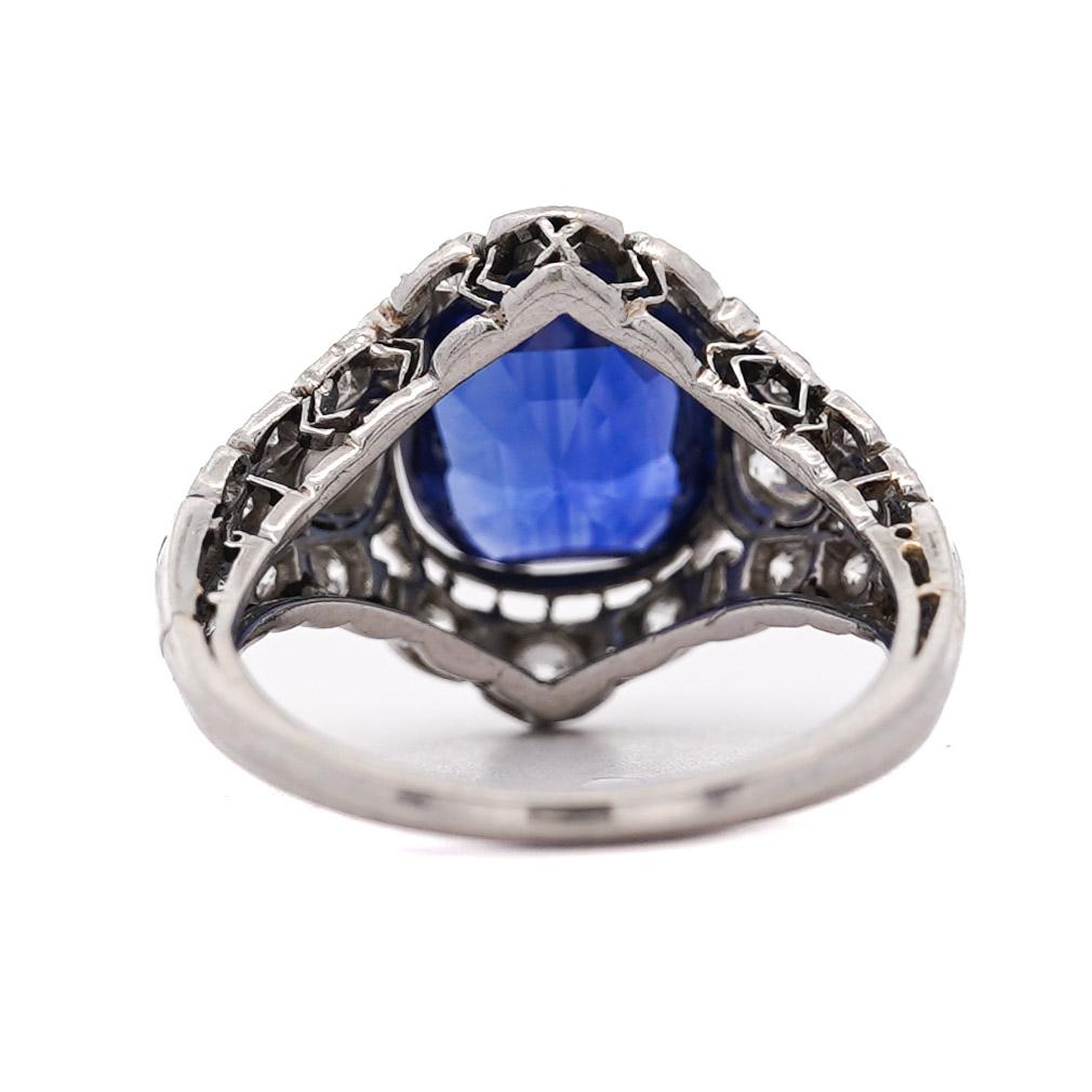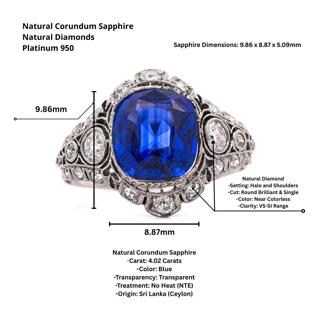 4.02 Carat No Heat Ceylon Sapphire In Platinum Art Deco Ring